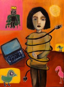 környezetben Orna Geva művein, aki tiltakozik a „naiv” beskatulyázás ellen: „ A festményeim